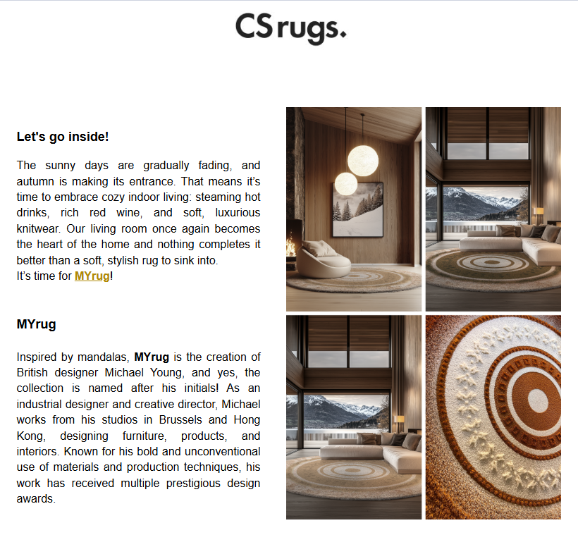 Since 1979 CS rugs specializes in creating luxurious rugs in various pile heights, material- and colour combinations.
